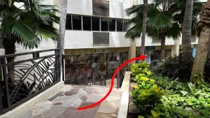 - シェラトン ・ワイキキの正面玄関右手にある階段を目指します。